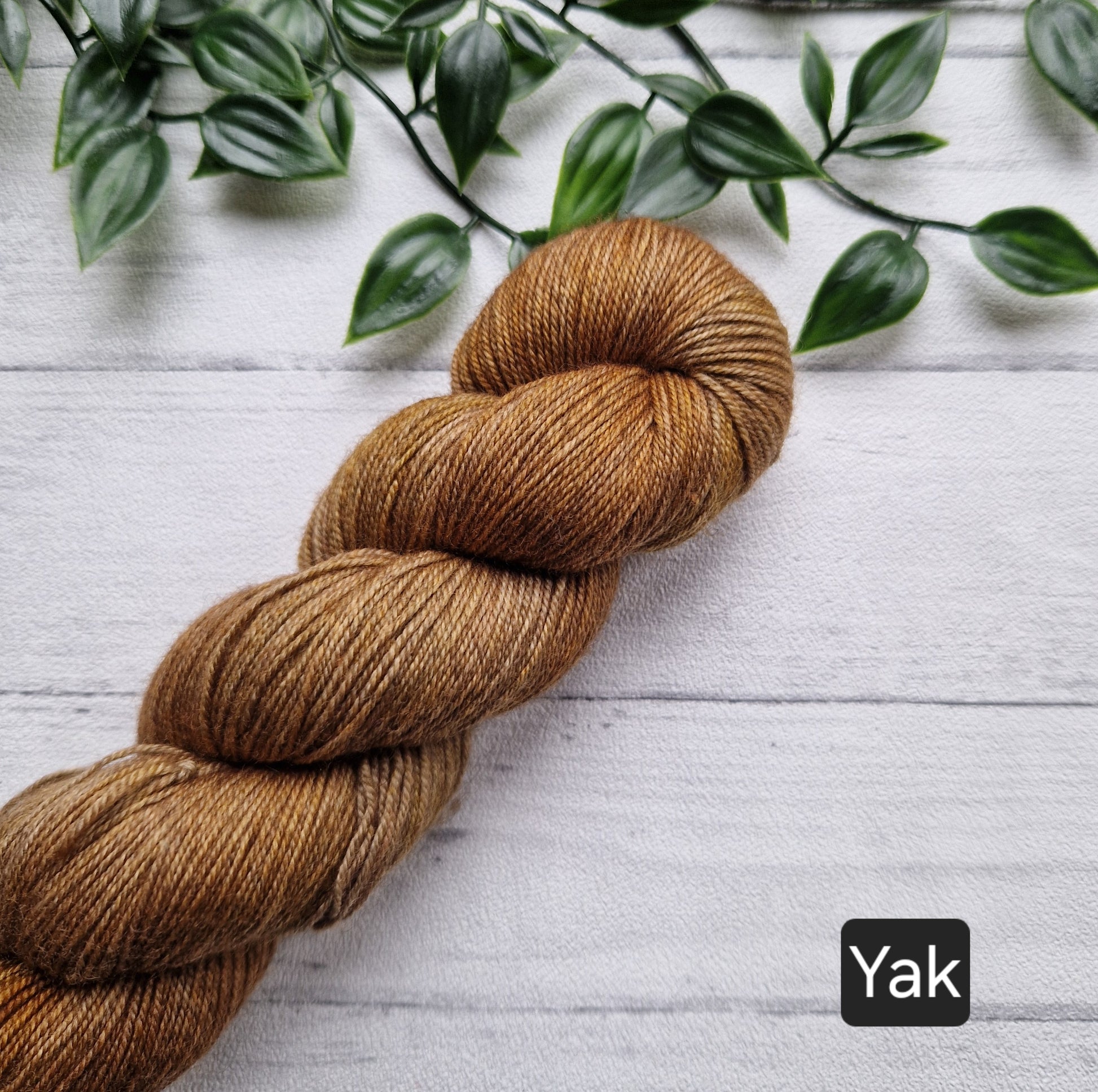 Yak Luxe 60% Superwash Merino 20% Silk 20% Yak |