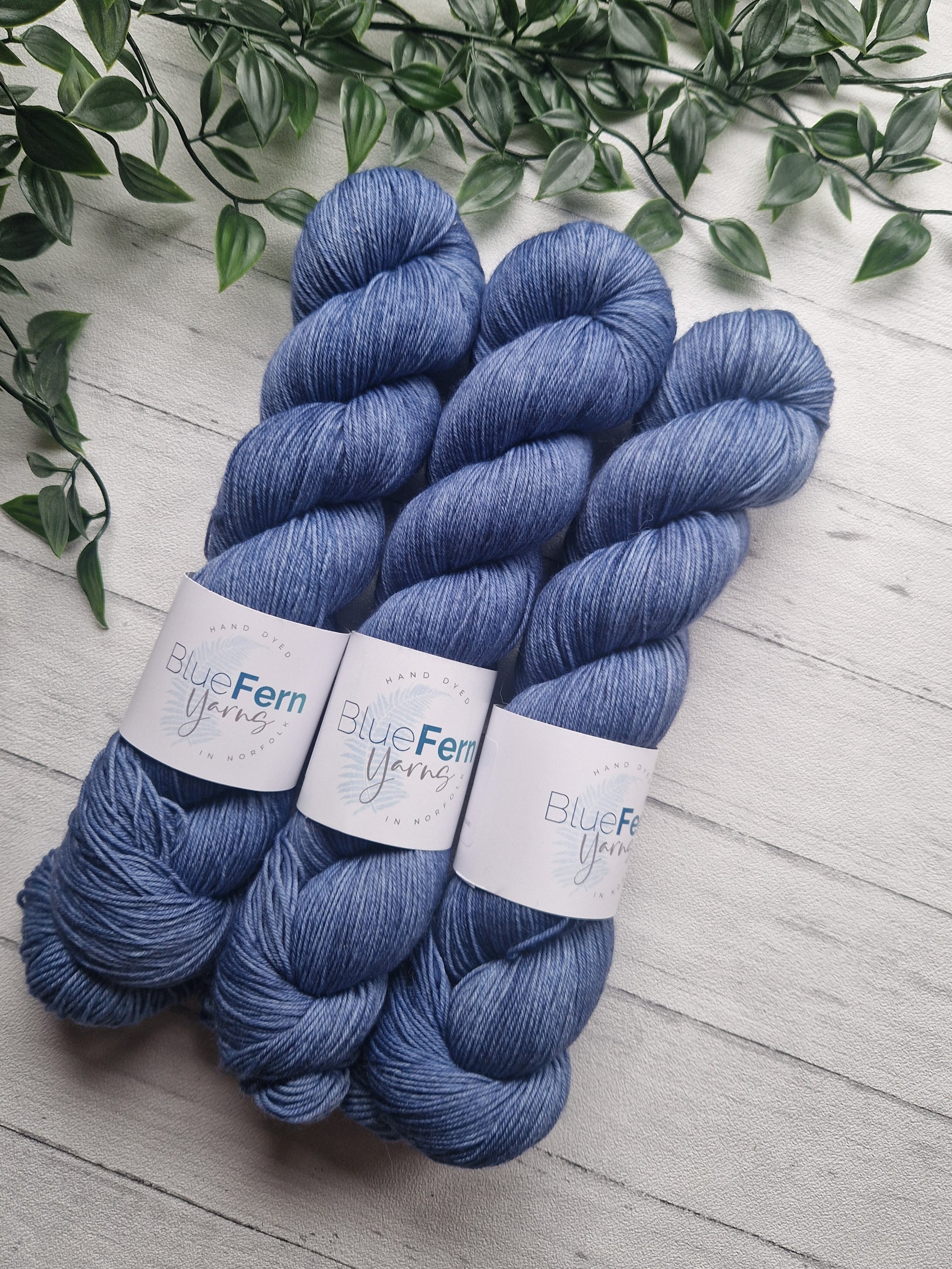 365 meters per 100g - 4ply This 2 ply high twist yarn is soft, bouncy in texture and robust. The yarn takes the dye really well, colours appear slightly more muted than on merino, but bright colours can be achieved. Although this yarn does not have nylon, it would be suitable for socks on a tight gauge, using 2.25mm needles. This Bluefaced Leicester yarn is British and comes from small farms all over the UK but particularly Wales. Dyed to Order only - please get in touch. |
