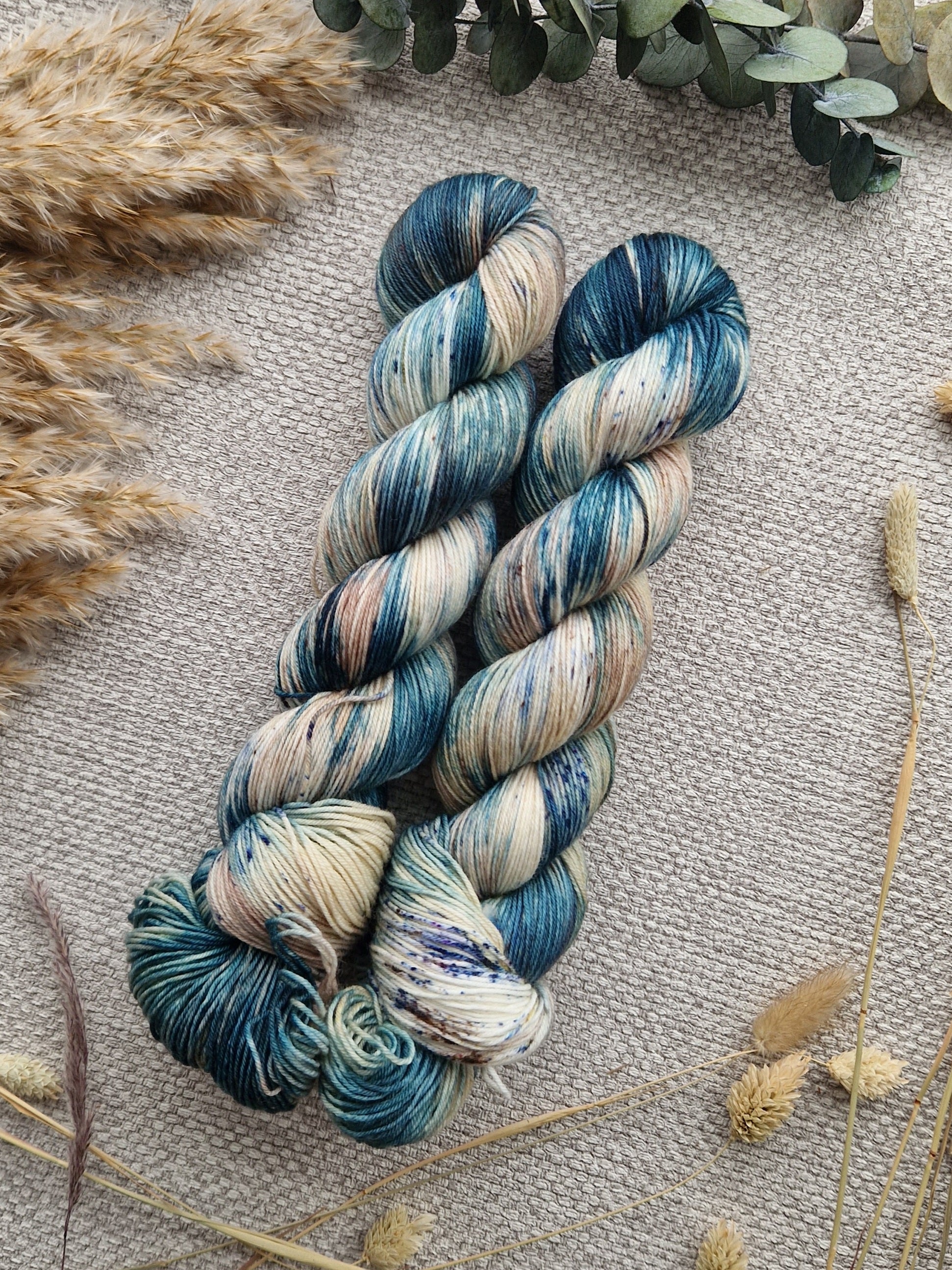 300m per 100g - Sport This popular yarn blend can be founs in may different dyed yarns and weights. It is a blend of Superwash Merino wool and Nylon, resulting in a soft yet strong texture that's perfect for knitting socks. Dyed to Order only - please get in touch. |