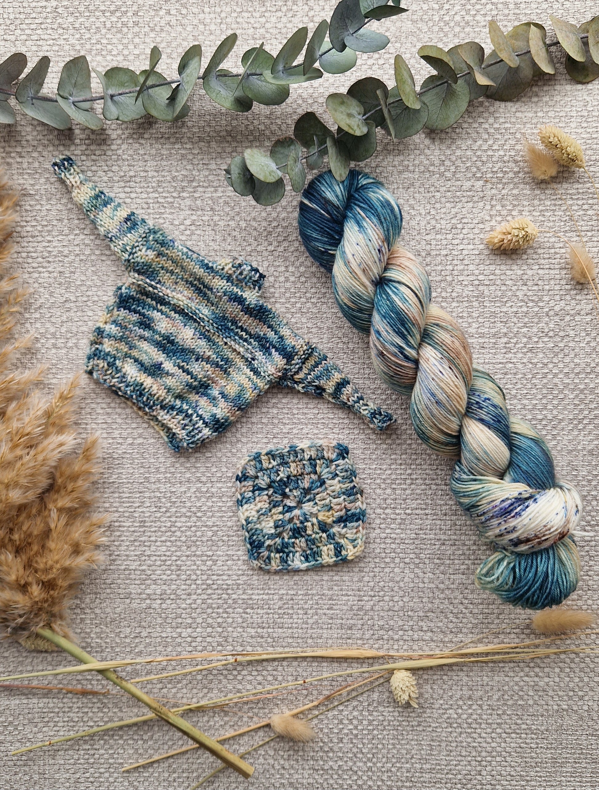 Please note that each skein of yarn is hand-dyed, resulting in unique variations between them. We suggest alternating skeins throughout your project to create a more uniform look. If you purchase multiple skeins of the same colourway, they will be from the same dye-lot unless otherwise specified. We take great care to ensure consistency between dye-lots, but as with all hand-dyed yarn, some variations may occur.