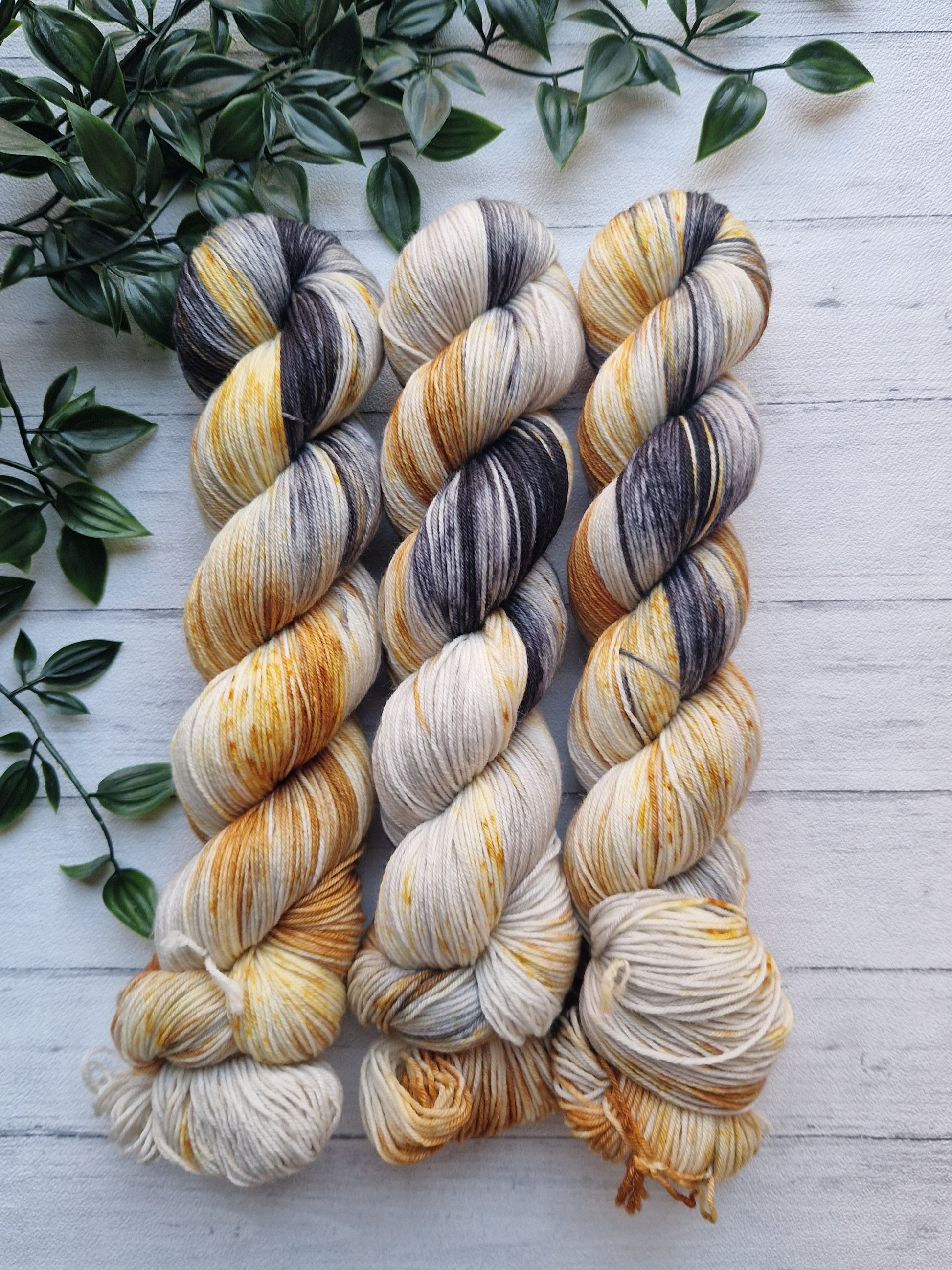 300m per 100g - Sport This popular yarn blend can be founs in may different dyed yarns and weights. It is a blend of Superwash Merino wool and Nylon, resulting in a soft yet strong texture that's perfect for knitting socks. Dyed to Order only - please get in touch. |