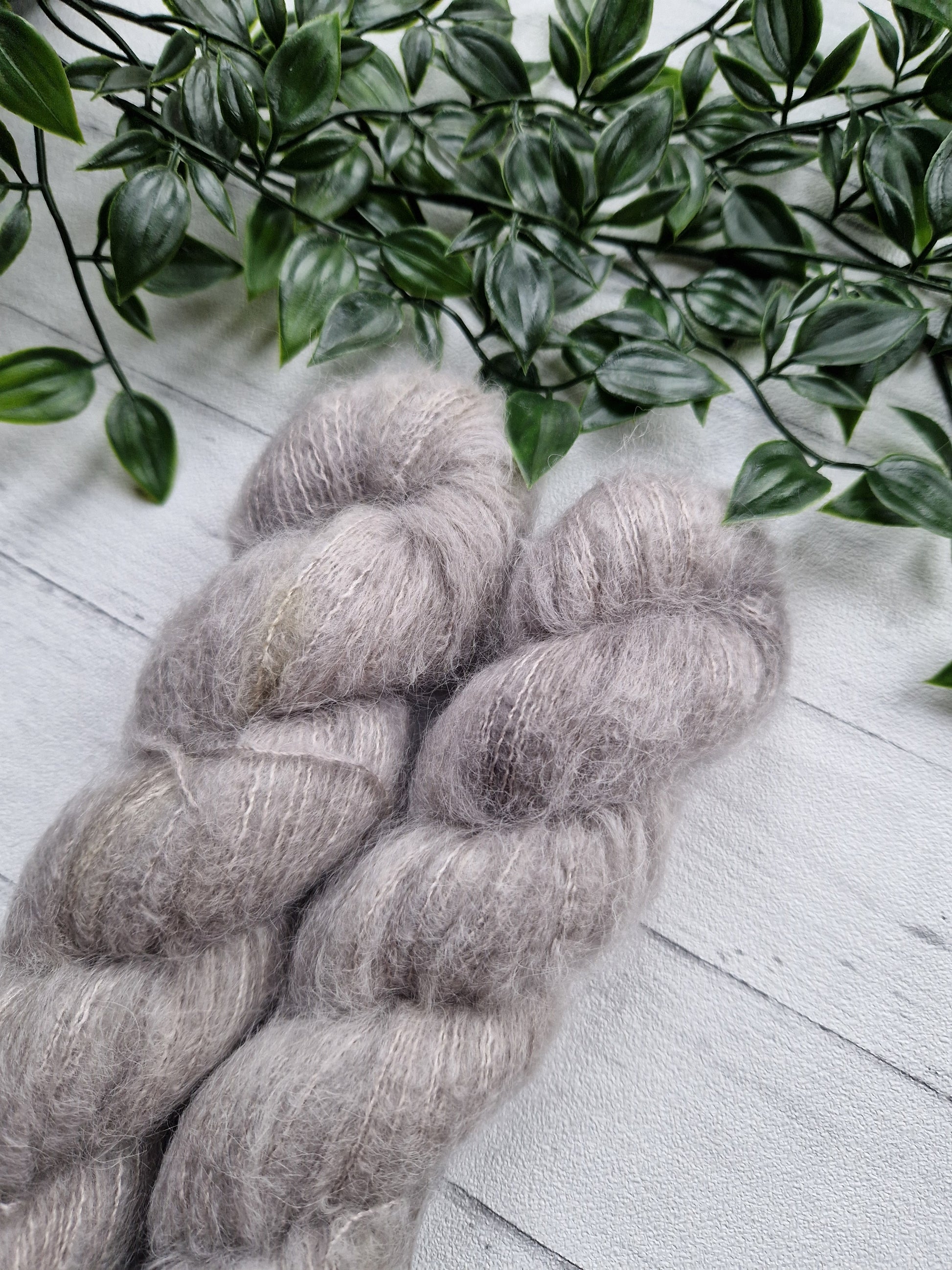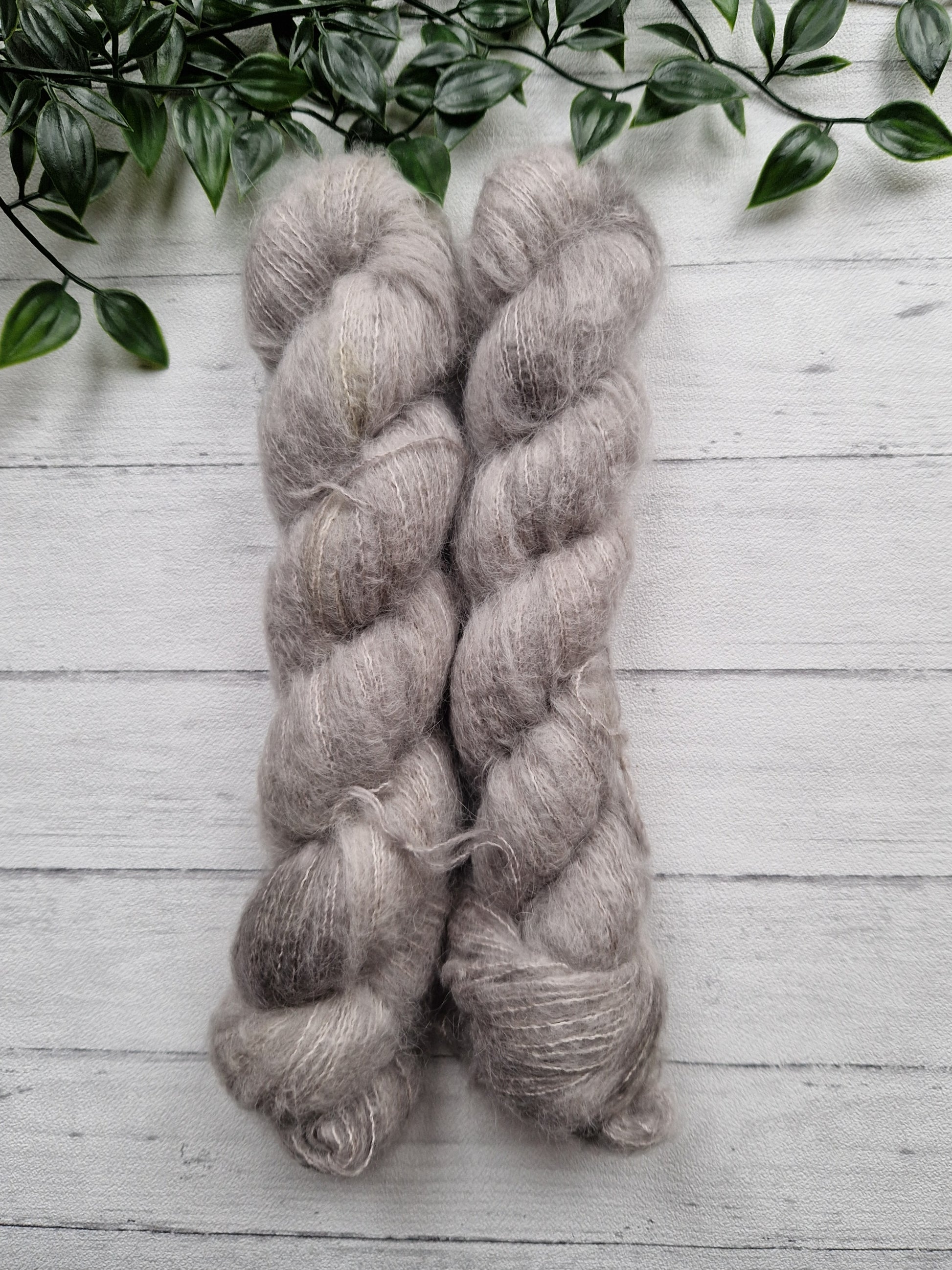 300 meters per 50g - Lace Weight This soft fluffy cloud-like yarn is super soft with a delicate halo ideal for holding with other yarn bases to create warm shawls and garments. It can also be used on its own. The way the fibres take up the dye is to create a really soft palette and the speckles will spread. This is a non-superwash yarn and therefore recommend handwashing only. |