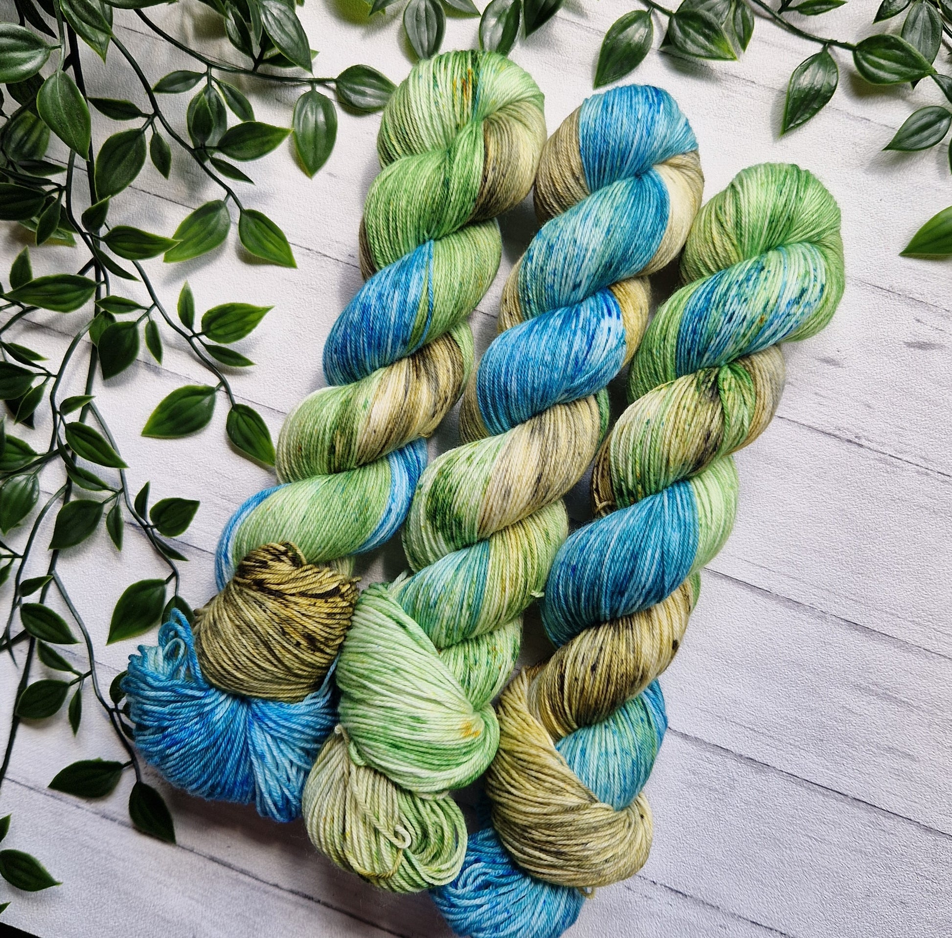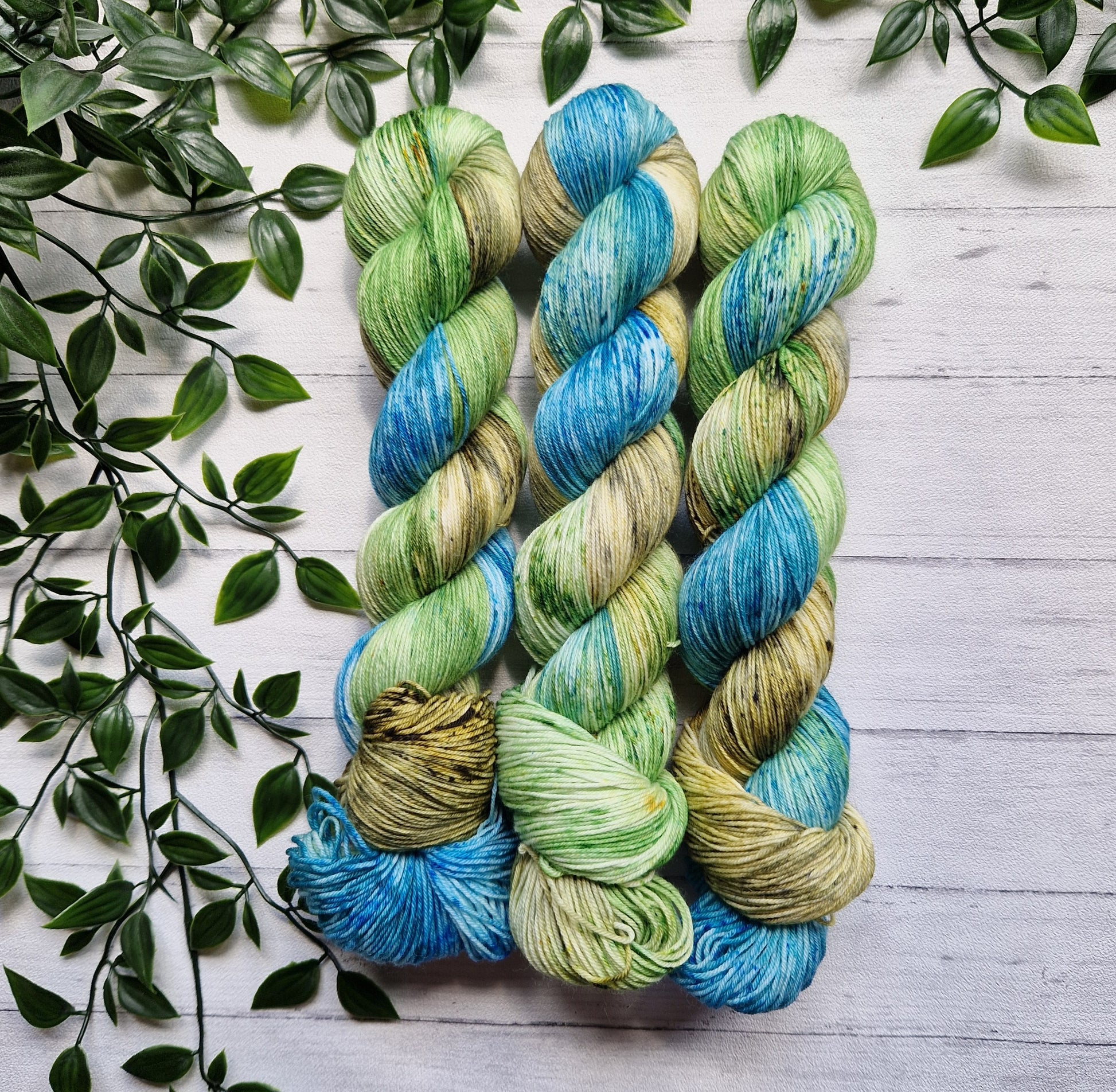 This stunning Mix of Blues and greens makes a fun bold and brightly colours yarn.