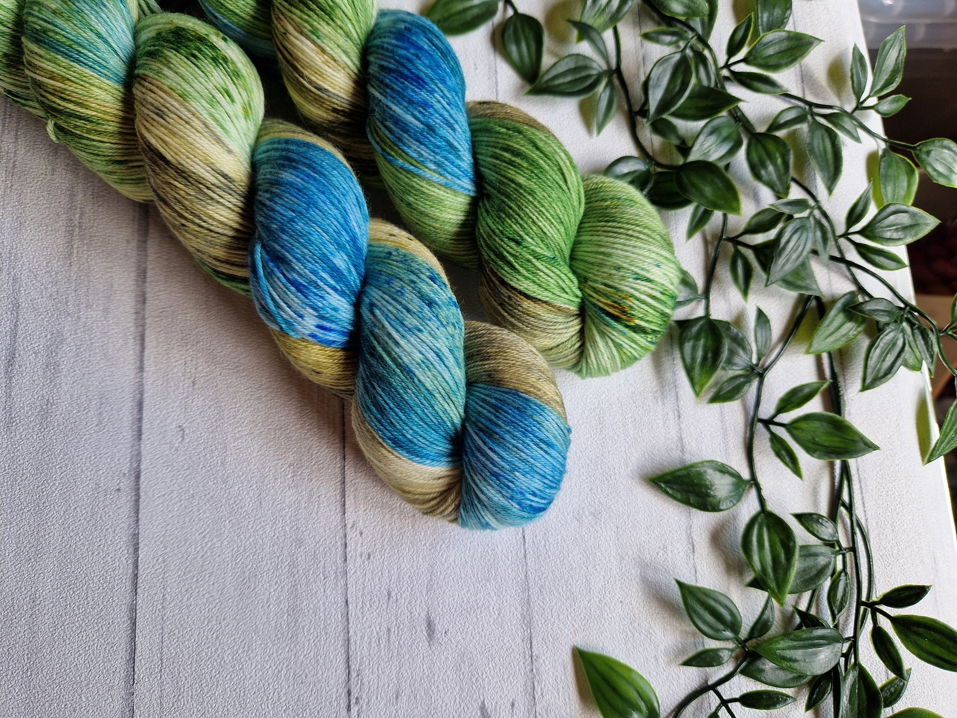 Please note that each skein of yarn is hand-dyed, resulting in unique variations between them. We suggest alternating skeins throughout your project to create a more uniform look. If you purchase multiple skeins of the same colourway, they will be from the same dye-lot unless otherwise specified. We take great care to ensure consistency between dye-lots, but as with all hand-dyed yarn, some variations may occur.