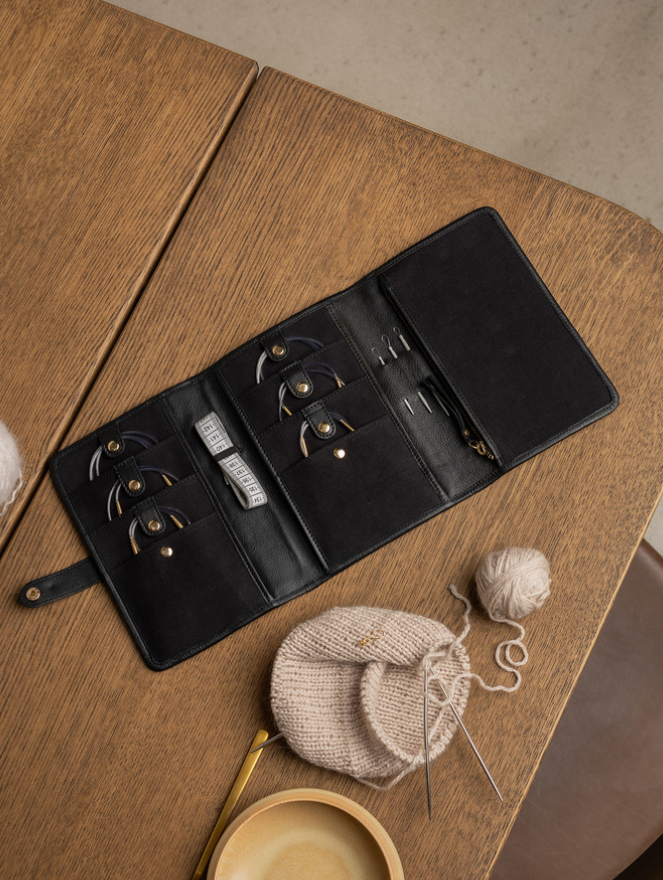 • Zippered pocket (for scissors and other loose knitting accessories)