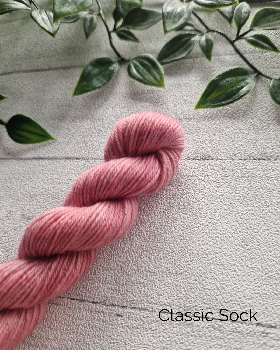 300m per 100g - Sport This popular yarn blend can be founs in may different dyed yarns and weights. It is a blend of Superwash Merino wool and Nylon, resulting in a soft yet strong texture that's perfect for knitting socks. Dyed to Order only - please get in touch. |