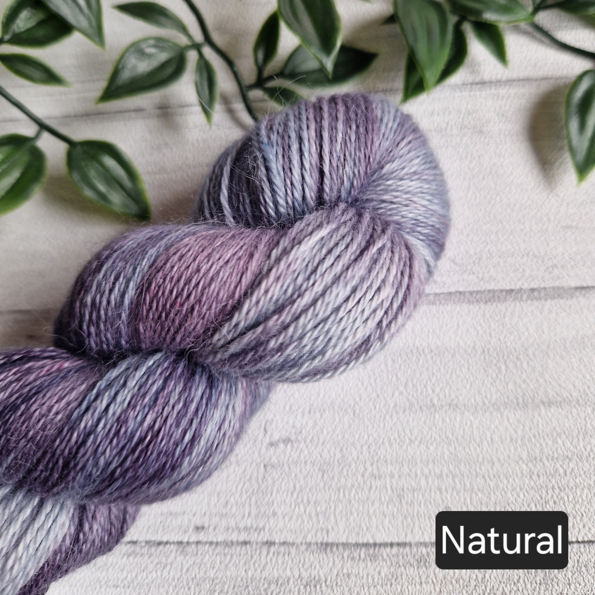 Please note that each skein of yarn is hand-dyed, resulting in unique variations between them. We suggest alternating skeins throughout your project to create a more uniform look. If you purchase multiple skeins of the same colourway, they will be from the same dye-lot unless otherwise specified. We take great care to ensure consistency between dye-lots, but as with all hand-dyed yarn, some variations may occur.