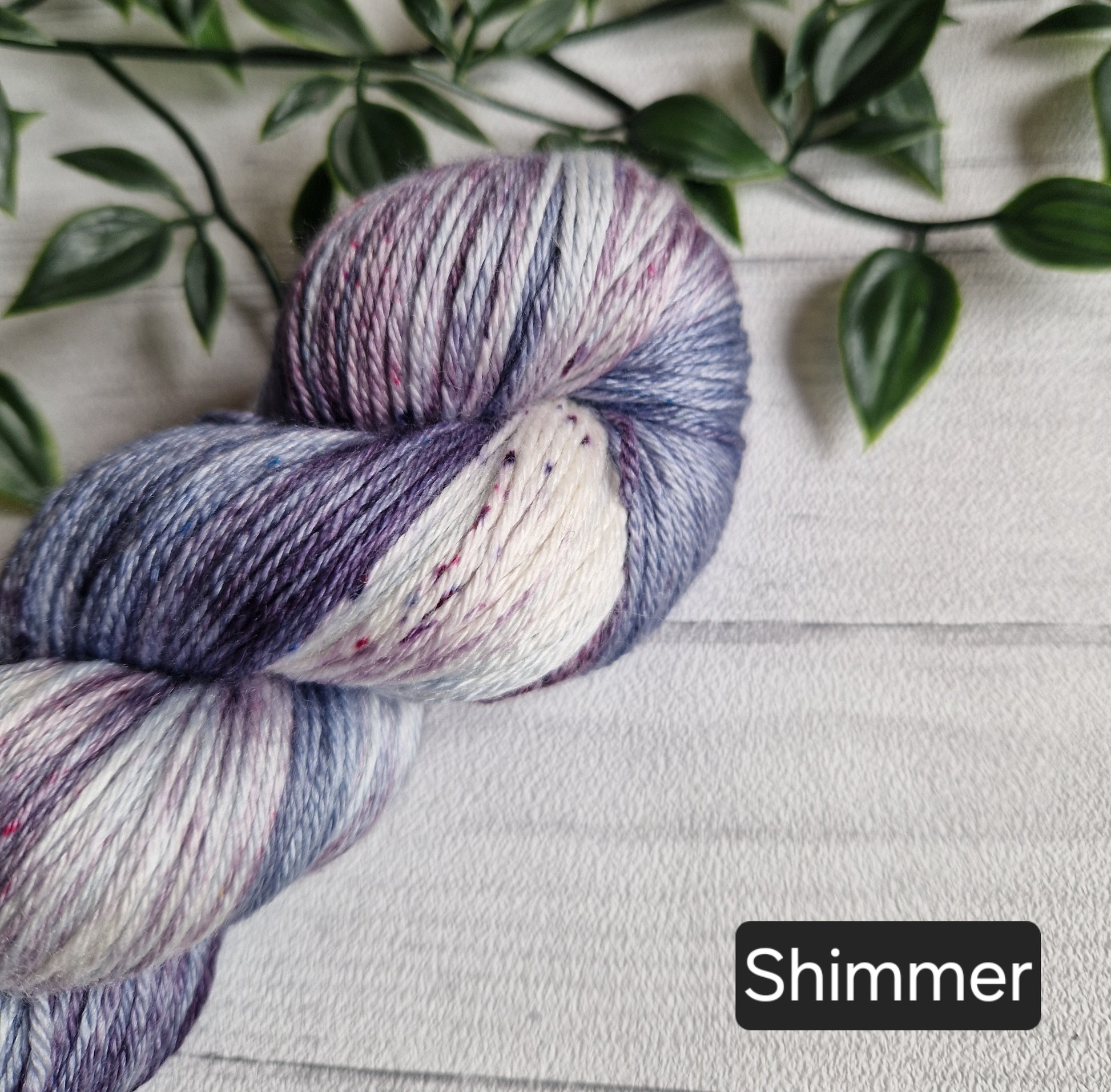 400 meters per 100g - 4ply This yarn is the perfect combination of silk, cashmere, and superwash merino, resulting in a beautiful, shiny texture that's soft to the touch. Get ready for a cosy, comfortable feel with a dash of added glamour. Thanks to the silk, this yarn will keep you cool in the summer months while providing warmth during the winter. Dyed to Order only - please get in touch. |