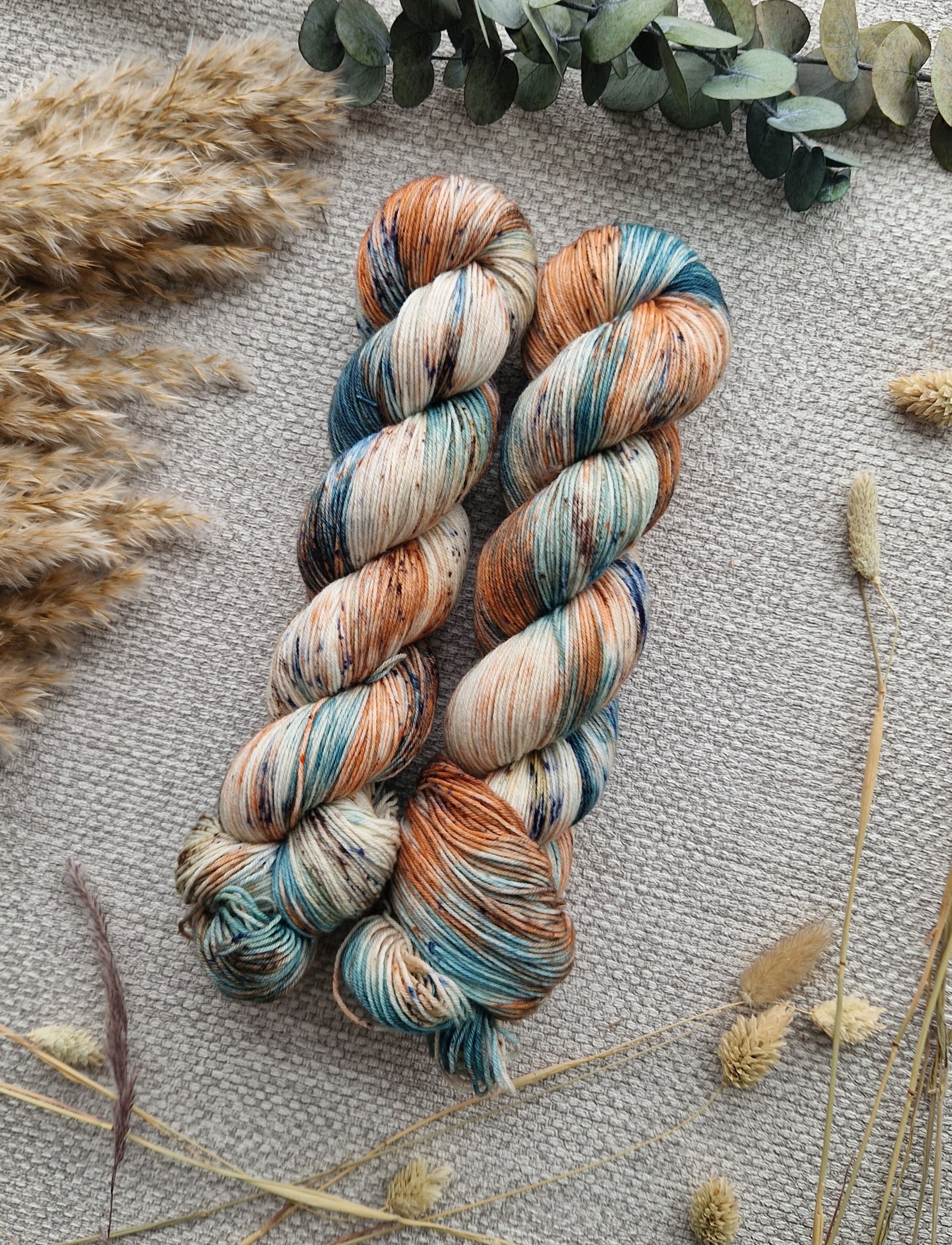 300m per 100g - Sport This popular yarn blend can be founs in may different dyed yarns and weights. It is a blend of Superwash Merino wool and Nylon, resulting in a soft yet strong texture that's perfect for knitting socks. Dyed to Order only - please get in touch. |