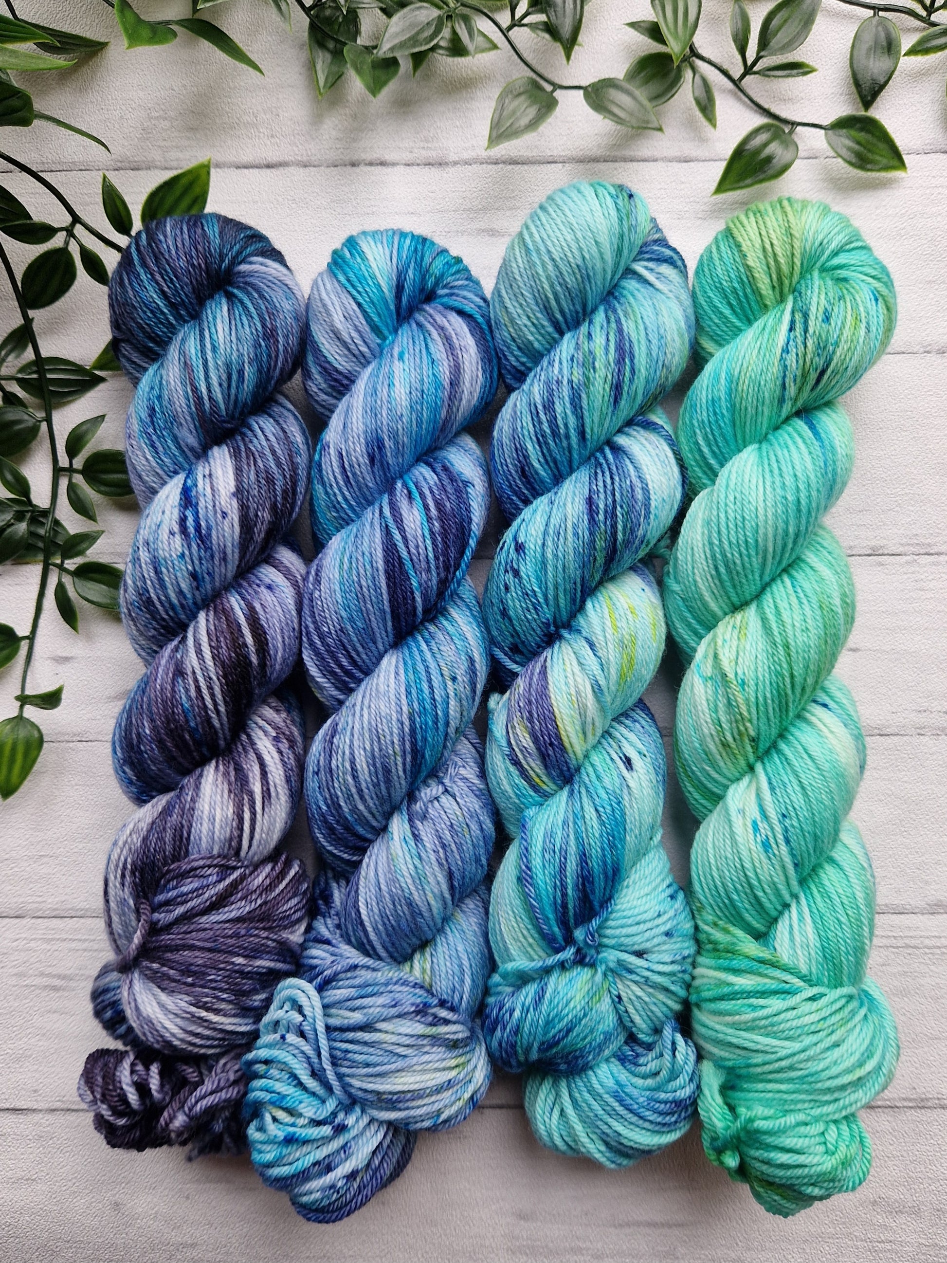 300m per 100g - Sport This popular yarn blend can be founs in may different dyed yarns and weights. It is a blend of Superwash Merino wool and Nylon, resulting in a soft yet strong texture that's perfect for knitting socks. Dyed to Order only - please get in touch. |