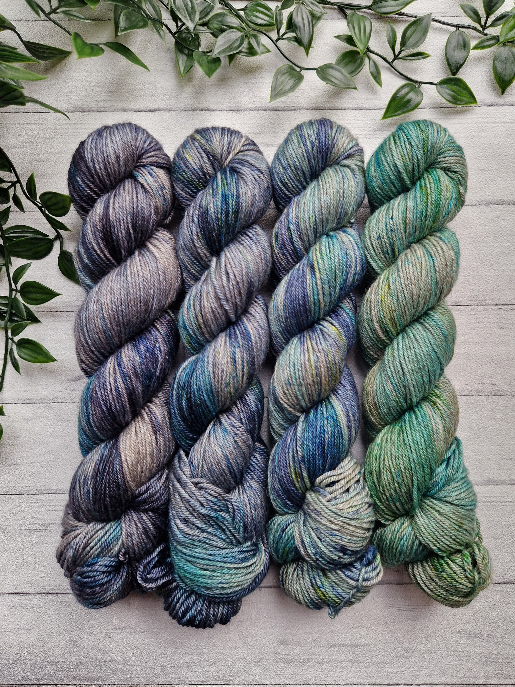 Please note that each skein of yarn is hand-dyed, resulting in unique variations between them. We suggest alternating skeins throughout your project to create a more uniform look. If you purchase multiple skeins of the same colourway, they will be from the same dye-lot unless otherwise specified. We take great care to ensure consistency between dye-lots, but as with all hand-dyed yarn, some variations may occur.