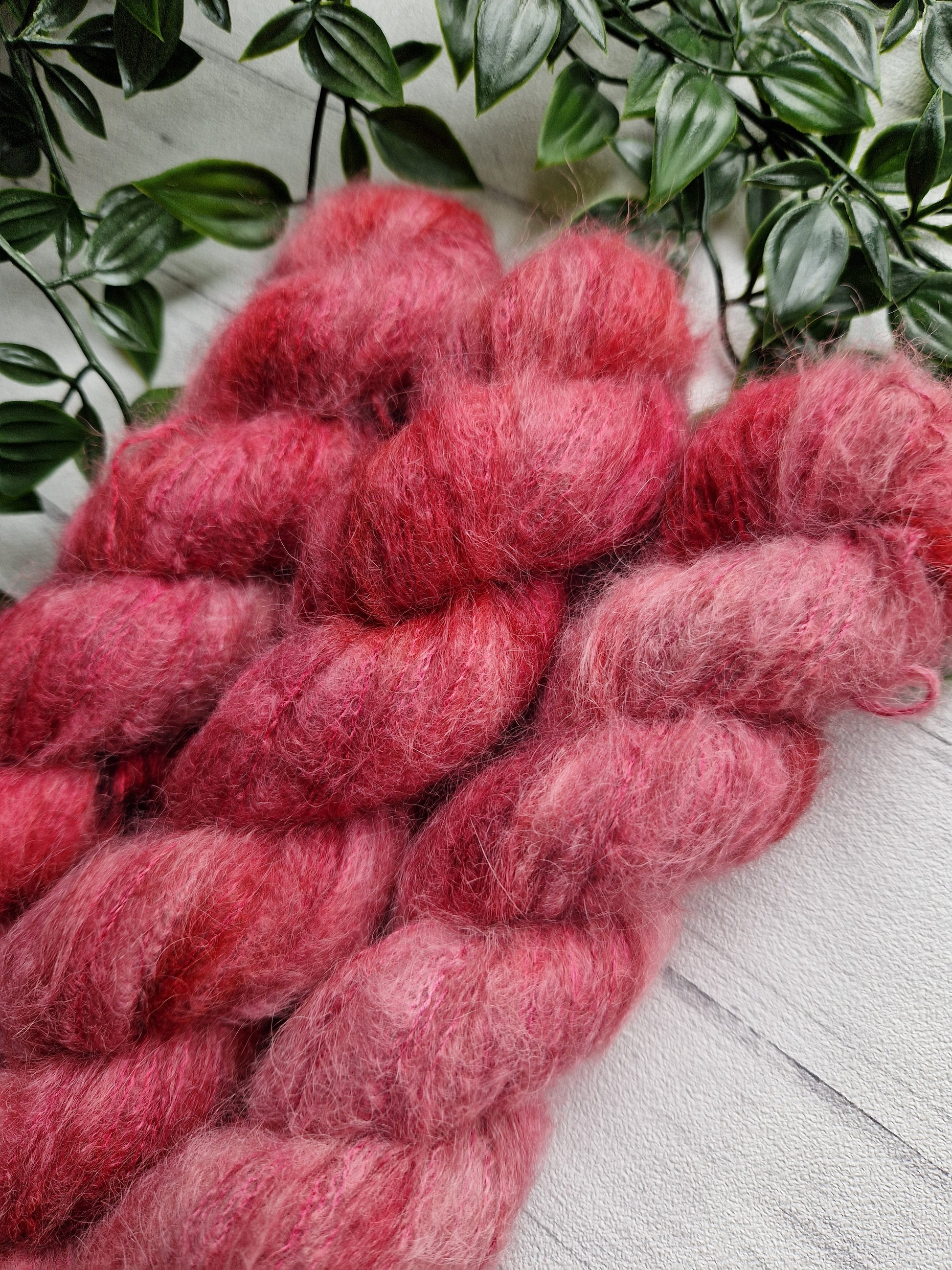 300 meters per 50g - Lace Weight This soft fluffy cloud-like yarn is super soft with a delicate halo ideal for holding with other yarn bases to create warm shawls and garments. It can also be used on its own. The way the fibres take up the dye is to create a really soft palette and the speckles will spread. This is a non-superwash yarn and therefore recommend handwashing only. |